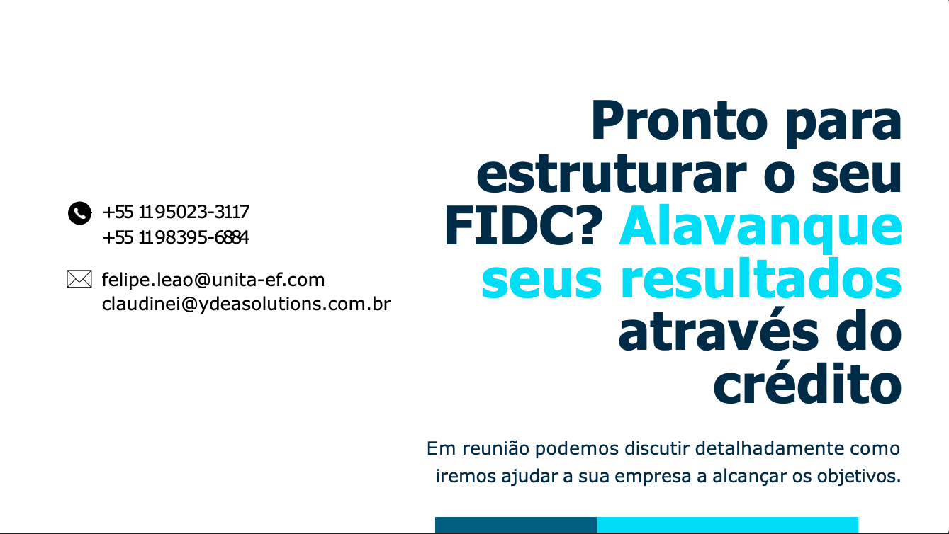 A Unita Capital é uma empresa especializada em estruturação financeira, FIDCs, operações de crédito estruturado, análise de risco e consultoria para captação de recursos.